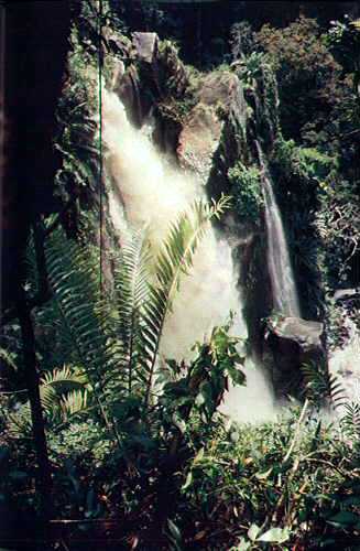 We visted these plants on our first visit to Uganda. The colony was the most spectacular of any we have visited and the habitat could truly be described as the 'lost world of cycads'. These beautiful cycads are at present known to grow only in a rainforest valley along the Mpanga River which empties into Lake George, in Western Uganda. This colony is large plants and very prolific. Huge plants can be seen han from rock crevices on sheer cliffs. There is waterfall and some cycads are even sprayed by the from the falls. Thousands of seedlings were seen.Many plants grow under the canopy of the trees and these have longer leaves and more luxuriant growth. Plants growing in full sun are all within 250 river and are growing in high grass on low hills in soil that appears to be poor. We spent two days amazing area once we had obtained permision from the local chief.