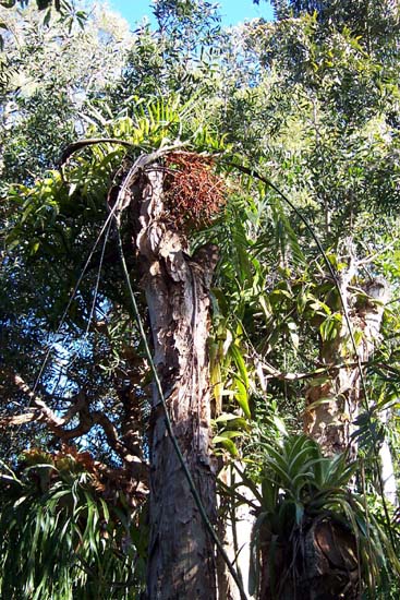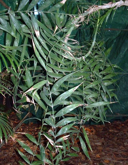 A rare climbing species, and one of the few (if not the only) without spines; to about 20m long, with slender, cane-like, occasionally branching stems. The upper leaves are reflexed and hooked enabling it to cling to taller vegetation and grow to great lengths.