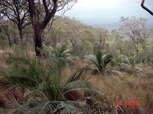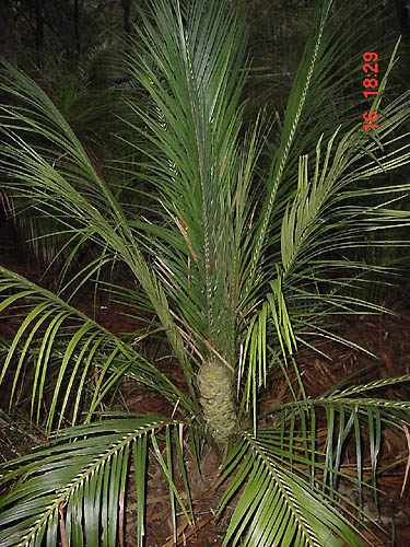 Macrozamia miquelii is one of the most under used cycads in both commercial and home gardens scenes. It is a very easy to grow and will take both full sun and shade. In Byfield national park it grows in semi-swamp in pine plantations and on dry rocky slopes. Bowenia serrulata also grows in this area and is something like a companion plant. If you wish to see this cycad up close the best place is Mt Archer on the outskirts of Rockhampton. While travelling through Byfield I came across one taipan and one death adder so I did not leave the road.
