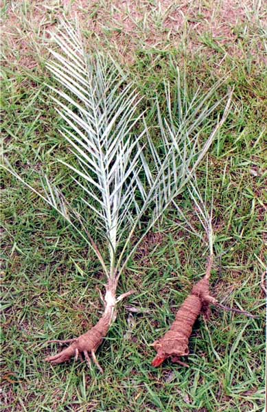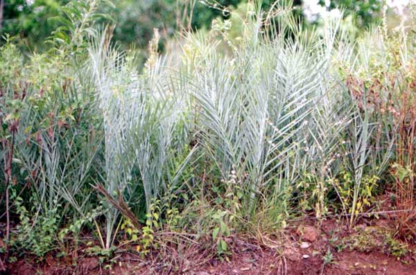 A very small palm, look like those smaller Butias-Syagrus, of subterranean and clustered stem. Leaves are light grey/blue. Fruits are edible and delicious, like orange. Leaves are utilised by local people.
